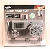The Orbit 3-Outlet Digital Watering Timer will turn your hose faucet into a programmed sprinkler system in minutes. No more dead plants because you forgot to water them. No more soggy lawn because you forgot to turn the water off. Just set the timer and go. With a large LCD display, oversized dial, and simple controls, programming is fast and easy. Built with high-quality materials and water-resistant construction, you can count on many years of dependable service. The 2 timed outlets and 1 manual outlet, are a perfect solution for a wide variety of projects around your home. From hose-end sprinklers to drip-irrigation. The manual on/off outlet allows you to use your hose faucet without interrupting programmed watering.Requires (2) AA Alkaline Batteries - Included.